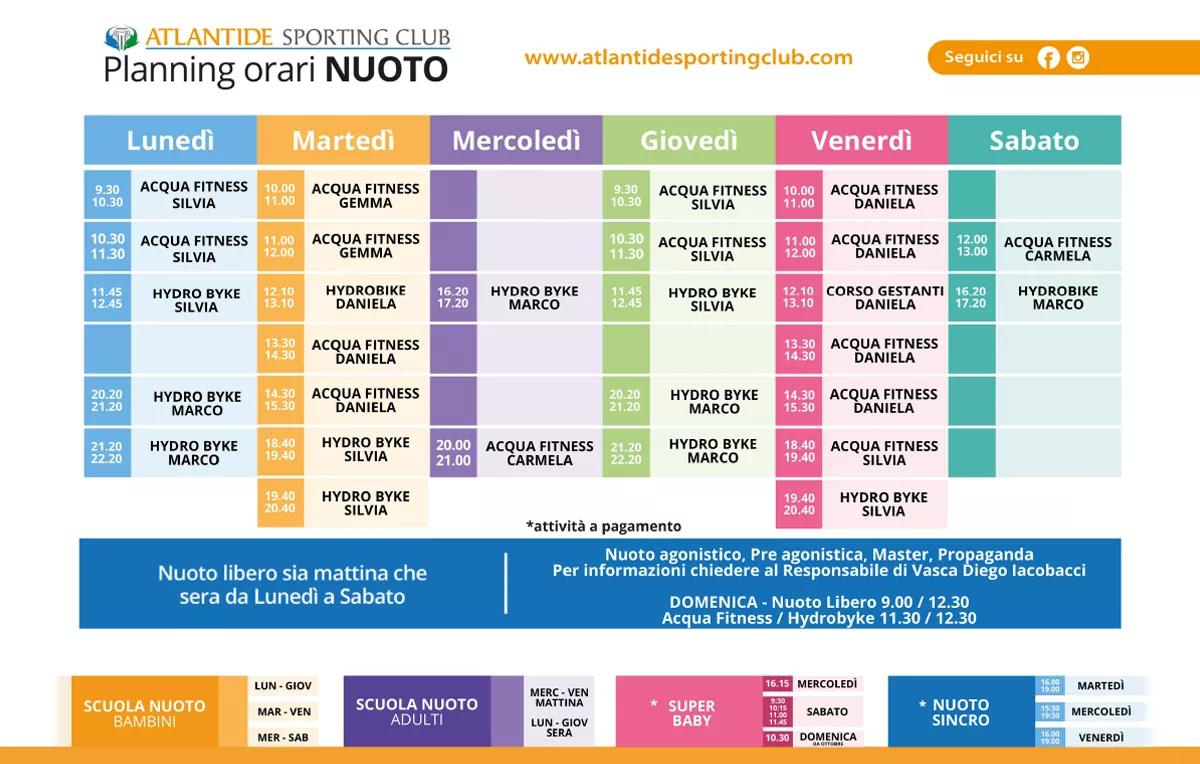 Le attività in acqua di Atlantide Sporting Club offrono un’esperienza completa per ogni età e livello di forma fisica. Con 4 aree specializzate, dai corsi di Super Baby per i più piccoli alle sessioni di Hydrobike per chi cerca un allenamento intensivo, garantiamo benefici per tutto il corpo. La nostra piscina 25 metri è ideale per il Nuoto Libero e per perfezionare la tecnica, mentre i corsi di Acquafitness combinano tonificazione e divertimento. Scopri un mondo di possibilità in acqua e inizia oggi il tuo percorso verso il benessere.