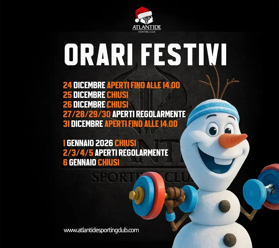 Orari Natalizi 2025 – Atlantide Sporting ClubLe feste sono alle porte e noi siamo pronti a tenervi aggiornati sugli orari speciali di apertura dell’Atlantide Sp...